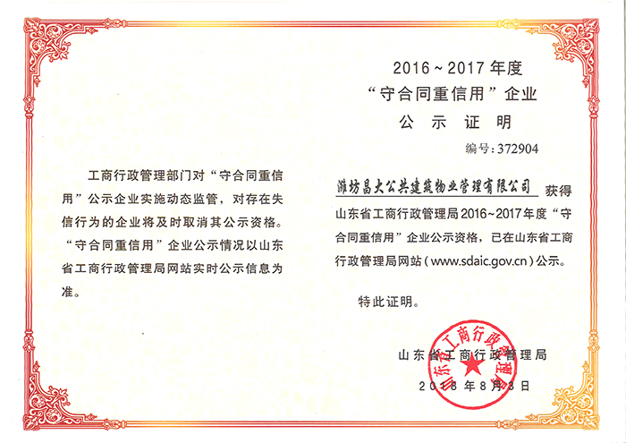 2016-2017年度守合同重信用企業(yè)