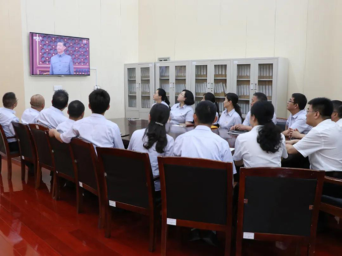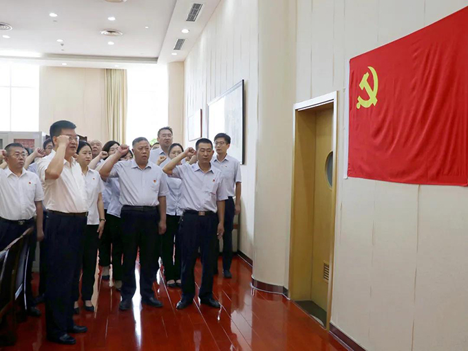 7月1日上午8:00,公司黨委組織全體在職黨員觀看慶祝中國共產(chǎn)黨成立100周年大會(huì)直播節(jié)目。隨后,黨委書記郇慶國同志帶領(lǐng)全體在職黨員重溫入黨誓詞,重溫莊嚴(yán)承諾。